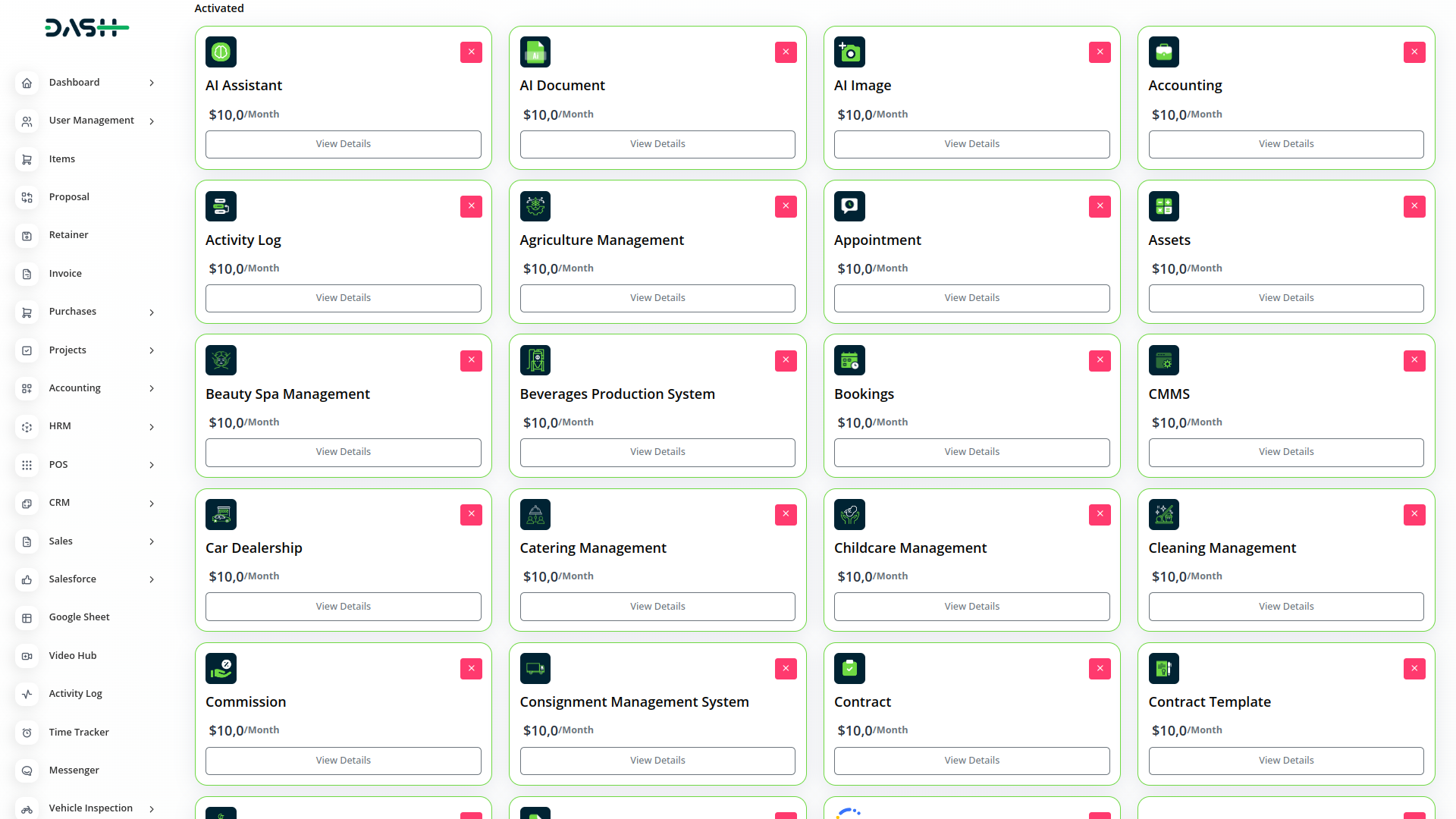 Com o Dash, você pode gerenciar convenientemente todas as funções do seu negócio em um único local