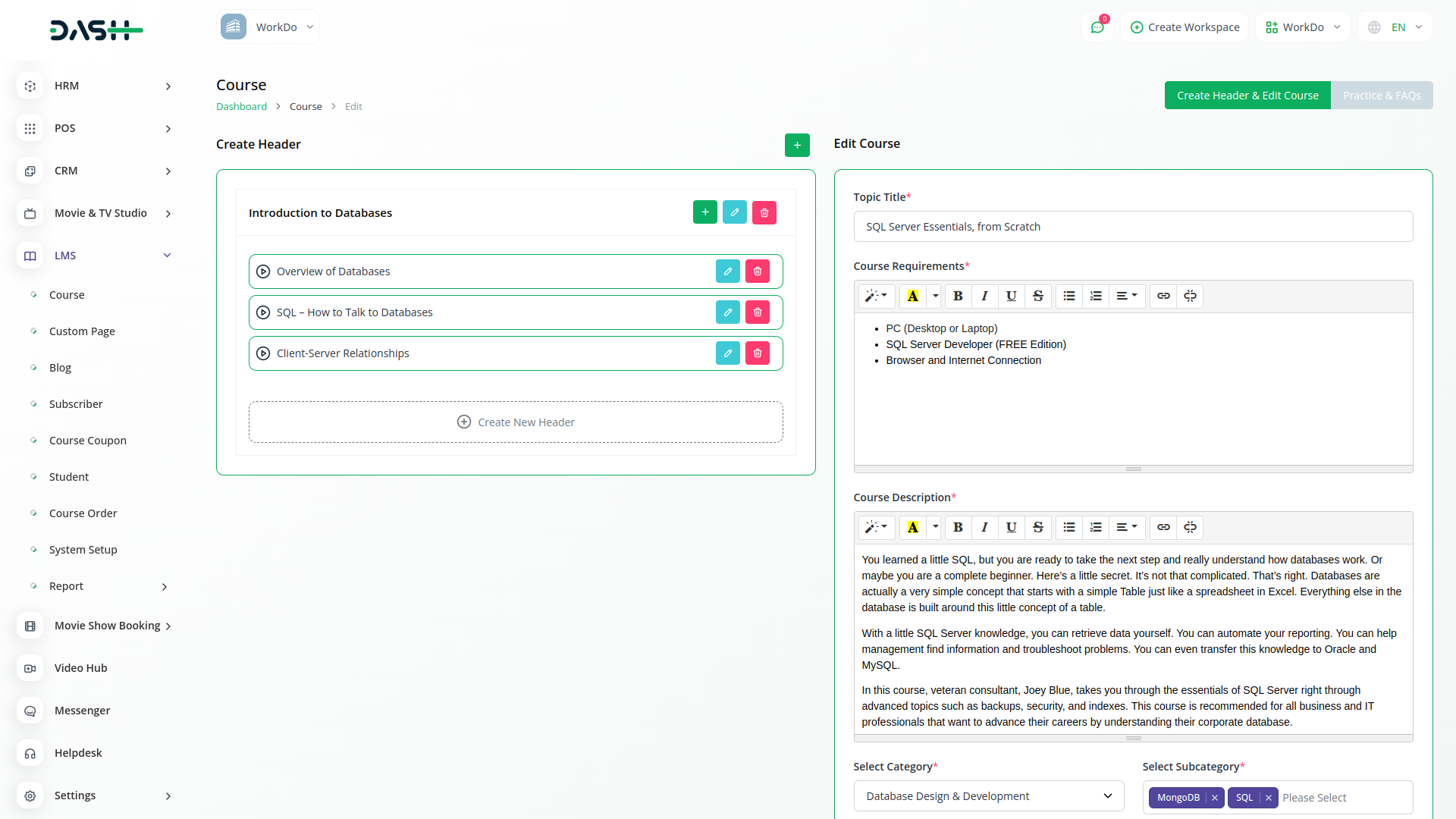 Easy to manage learning by listing courses and courses’ categories