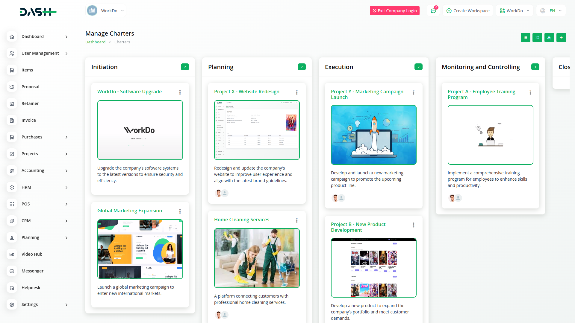 Com o Dash, você pode gerenciar todas as suas funções de negócios de forma conveniente em um único local.