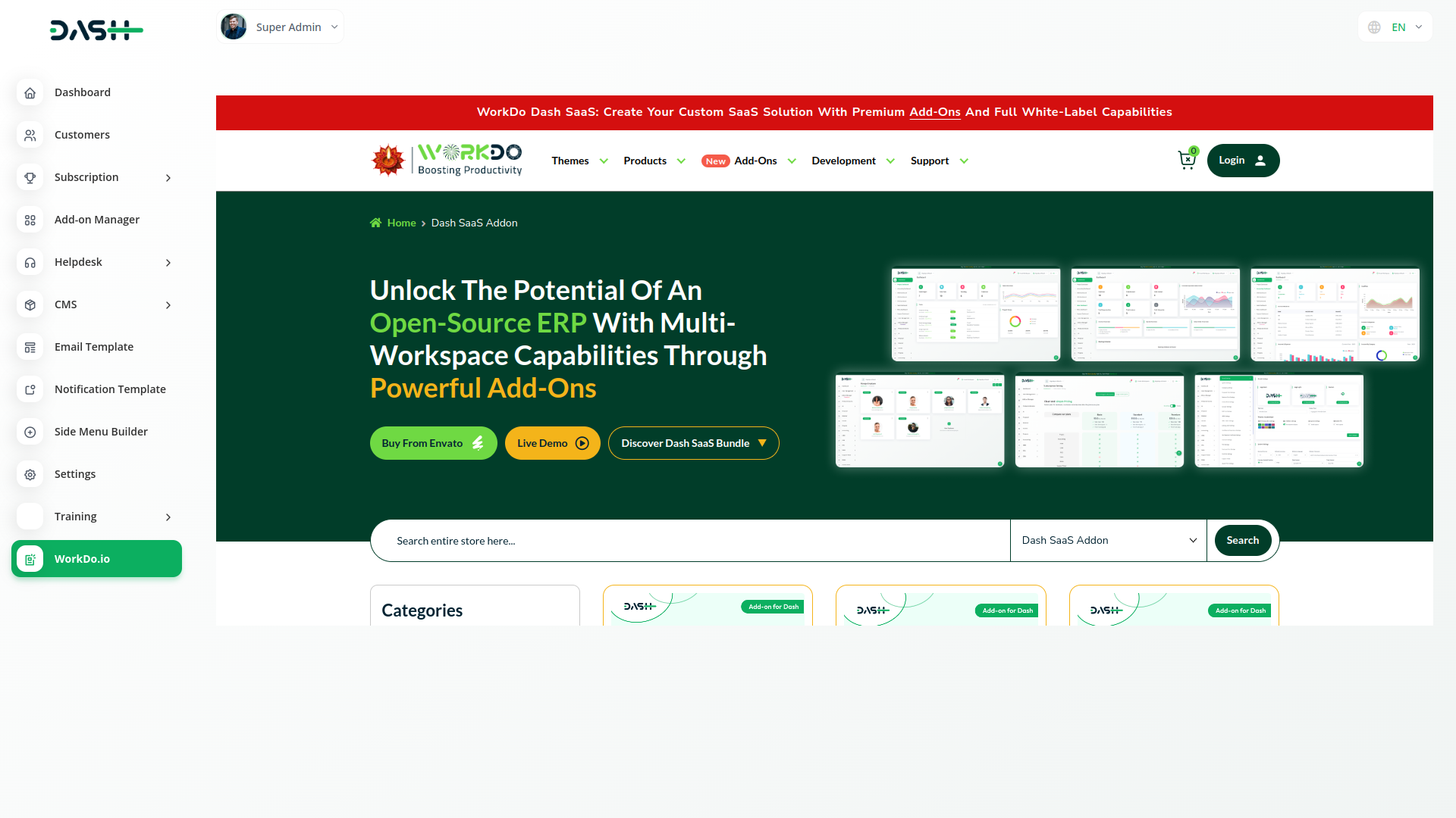 Com o Dash, você pode gerenciar convenientemente todas as funções do seu negócio em um único local