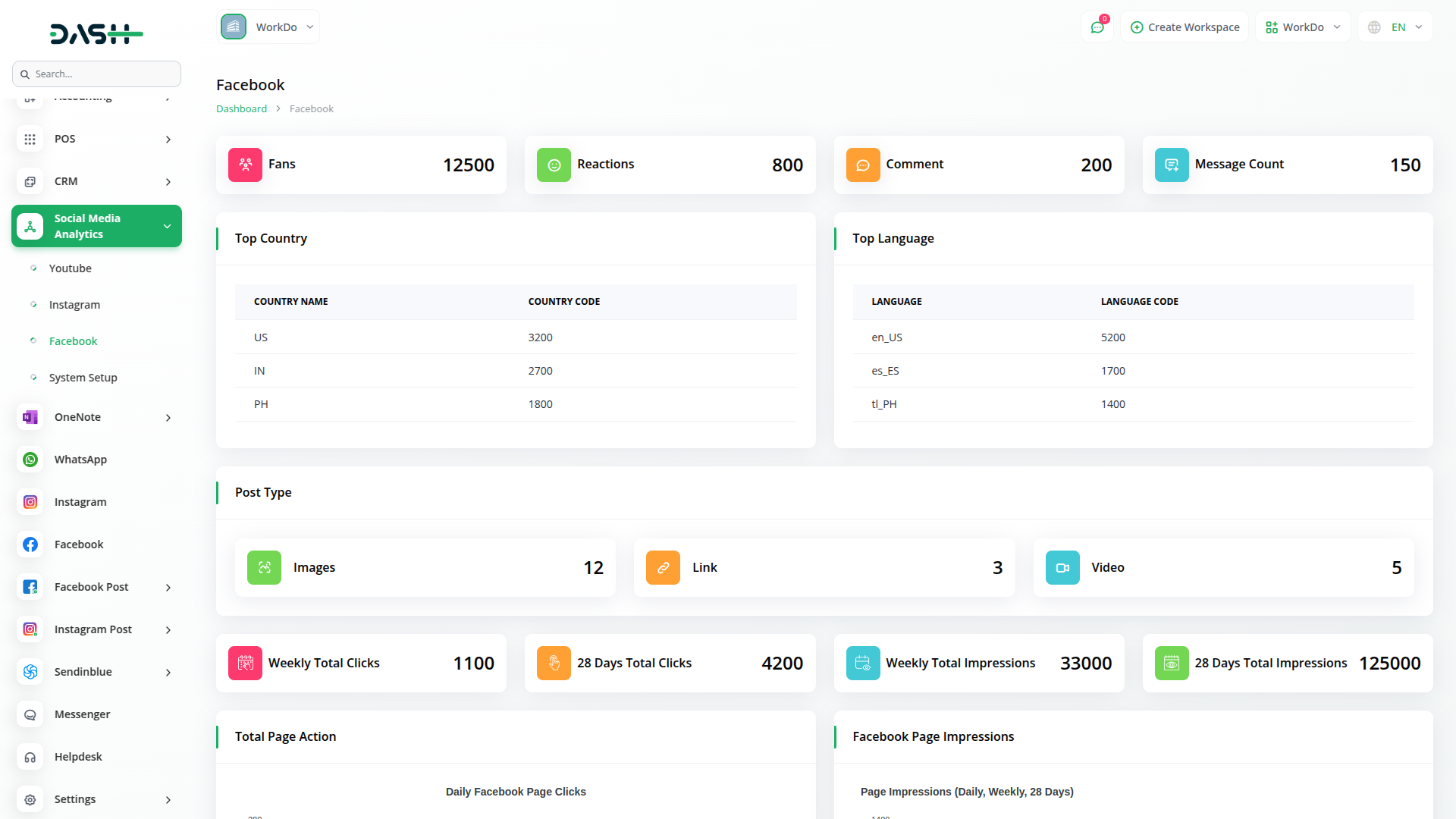 Track how your Facebook page is performing in detail—from fan count to reactions, messages, and content types. Use powerful visual charts to review weekly and 28-day trends in clicks and impressions. Get a closer look at what`s driving audience action and shape your content around what your fans love most.