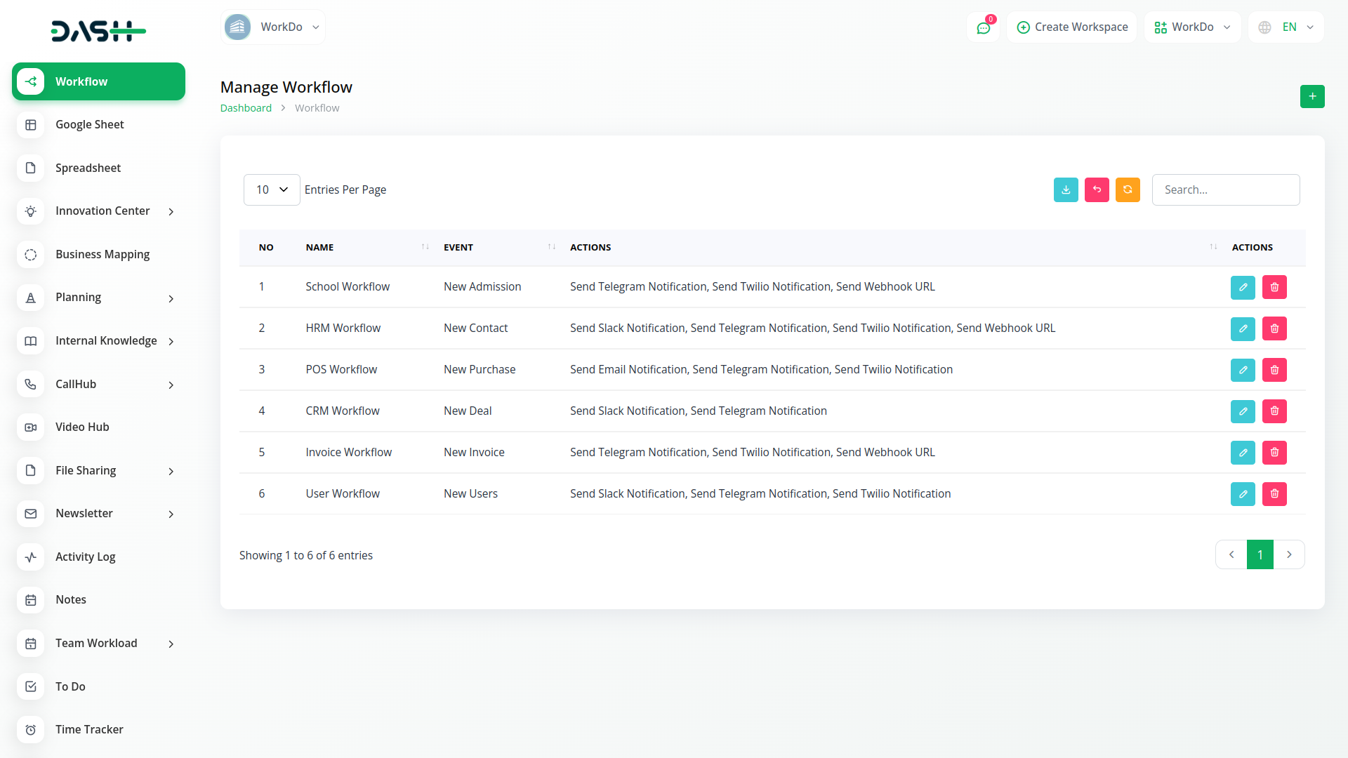 Workflow automation triggers notifications (email, Slack, Telegram, Twitter) for new invoices, user leads, projects. It monitors status and sends personalized alerts. Streamlines communication and updates for efficient processes.