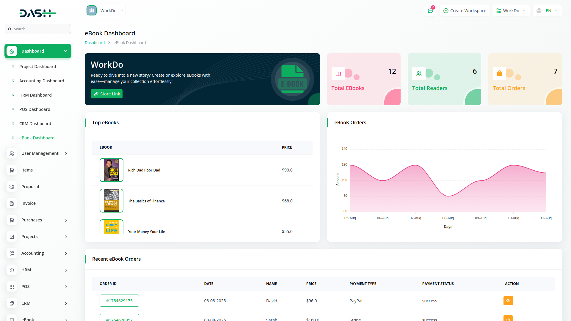 Comece sua livraria online com nossa plataforma de livros eletrônicos tudo em um criada para facilitar a venda e o gerenciamento. Organize livros com informações detalhadas, mostre perfis de autores e ofereça uma experiência de compra suave com avaliações, listas de desejos e checkout seguro. Com rastreamento em tempo real, downloads instantâneos e um poderoso painel de administração, tudo funciona em conjunto para ajudá-lo a expandir sua livraria digital sem esforço.
